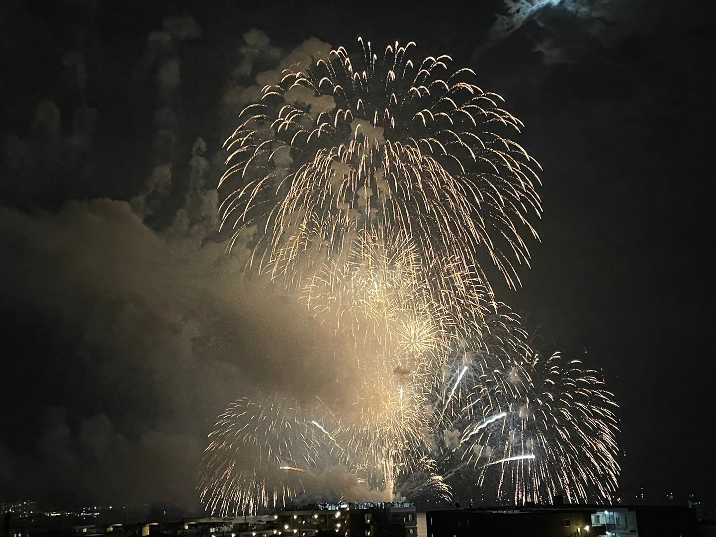 お昼頃まで雨が降ったりとあまり天気はよくなかったのですが、花火が打ち上がる頃には月が出ていました🌕