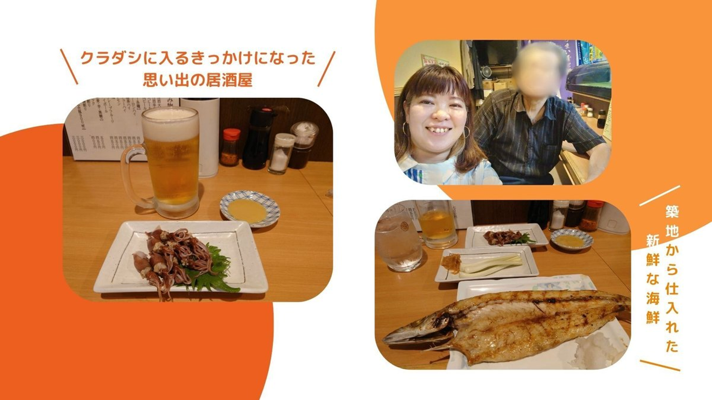 A.クラダシへの入社はまさに運命だったなと思います。以前働いていた会社の知り合いが営む居酒屋に思い立って一人で立ち寄った際、クラダシ創業者の関藤と出会ったことがきっかけでした。お話をする中で、「うちの会社に来ない?」とのオファーを受けて、そのまま転職を決めました。前職は食品やECにはあまり関わりのない航空系で、さらに正直に言うと、当時はフードロスや社会貢献に特に関心があったわけではありませんでした。ただ、私は居酒屋に行ったら「とりあえず隣の人と乾杯する」と決めているくらい人とお話しするのが好きで、新しい出会いを大切にしています。ちょうど転職を考えていたタイミングで関藤と出会い、意気投合。ご縁を感じましたし、何よりも関藤の人柄に魅力を感じて、入社を決意しました。思い返すと、自分でもなかなか思い切った決断だったなと感じますね(笑)