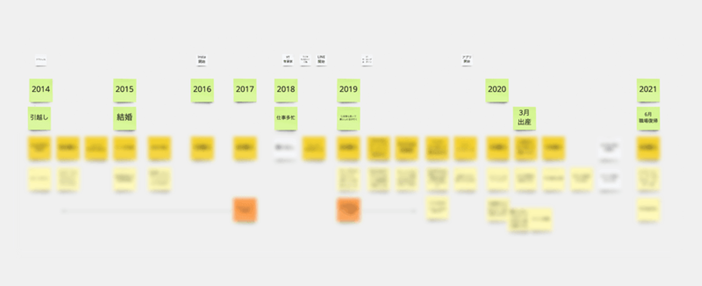 ジャーニーマップ形式でまとめるのは2つ良いことがあって、時系列で話していくと当店との関係性の変化がわかりやすいこと、お客さまがエピソードを思い出しやすいので深いお話が聞けることです。