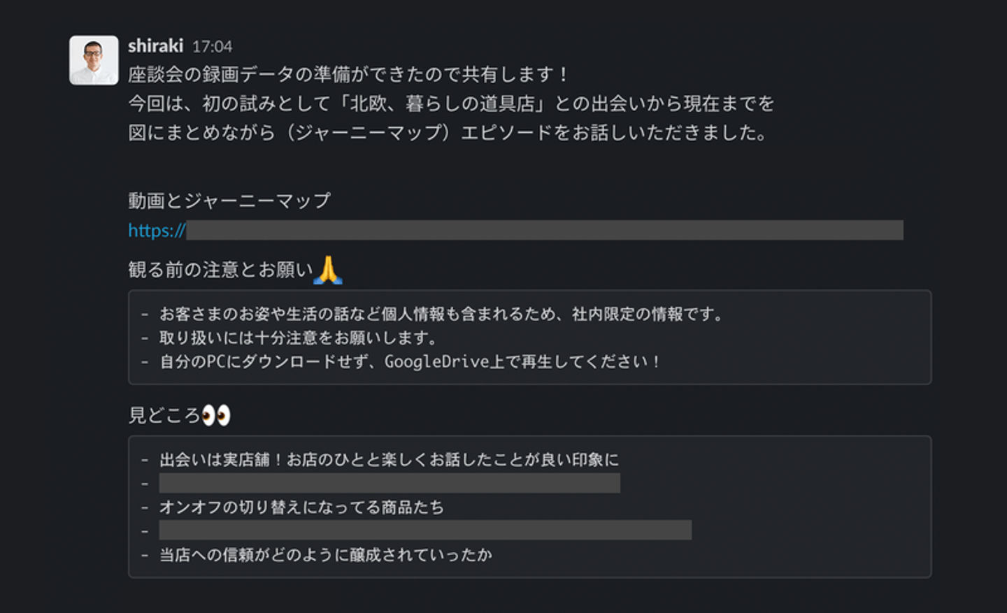 見どころを添えてSlackで共有
