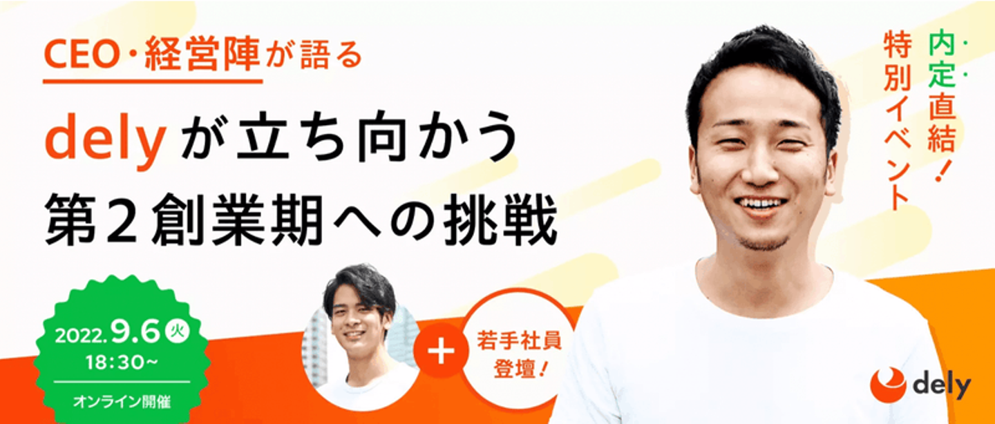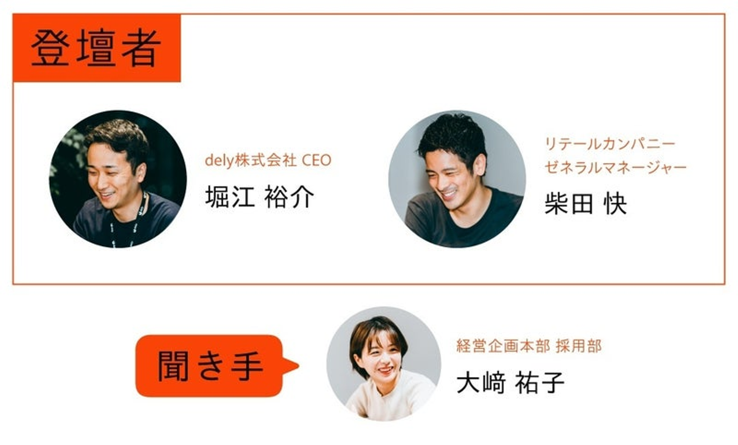 前半の経営陣パートでは、dely株式会社 CEOの堀江 裕介、元人事責任者で現リテールカンパニー ゼネラルマネージャー / 執行役員の柴田 快が登壇。
