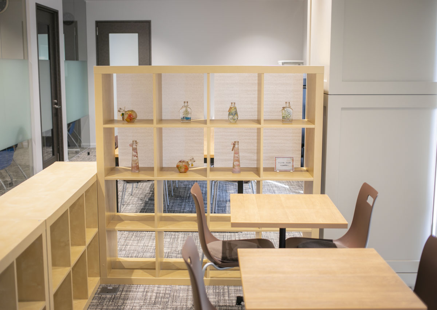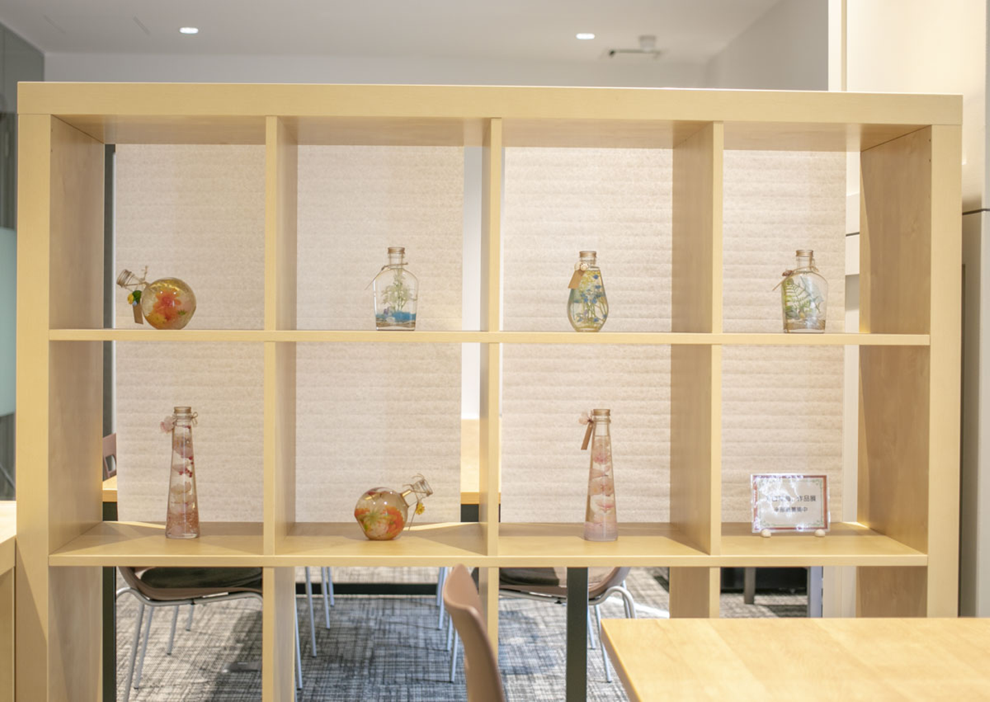 カフェスペースに突如現れたおしゃれなハーバリウム・・・。