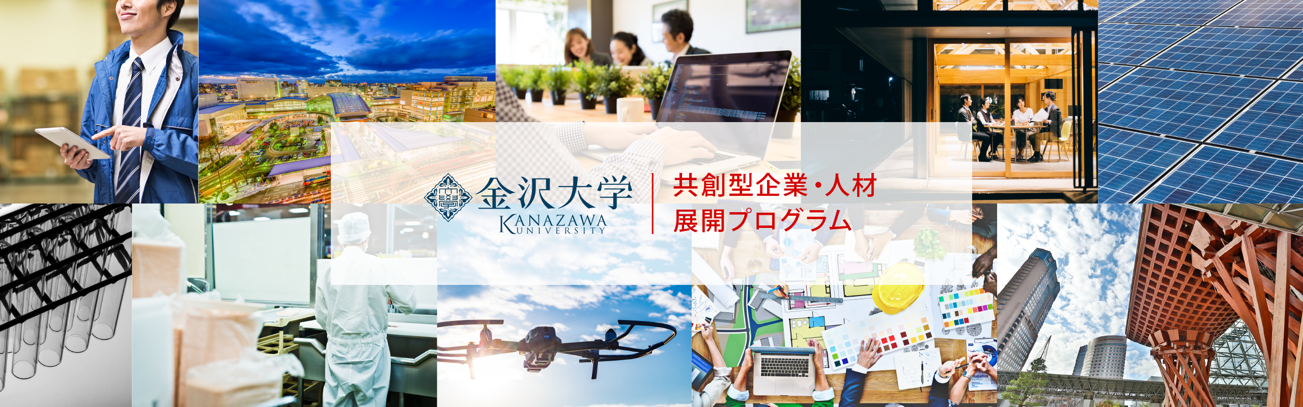 金沢大学 共創型企業・人材展開プログラムは、地域企業の活性化や人材の高度化を図る目的で都市部より募集した人材に、実践型リカレント学習の場と金沢大学の客員研究員としての立場を提供し、地域企業・地域産業の課題解決と発展をサポートするものです。 大学の教育・研究力、人材仲介機関のコーディネート、地域の自治体・金融機関のサポート、中核人材の専門性、地域事業者の経営戦略が一体となった「共創」こそが本事業の特徴です。 この事業を通じて、地域企業が共創的に発展する新しいモデルを創出し、全国に普及することを目指します。