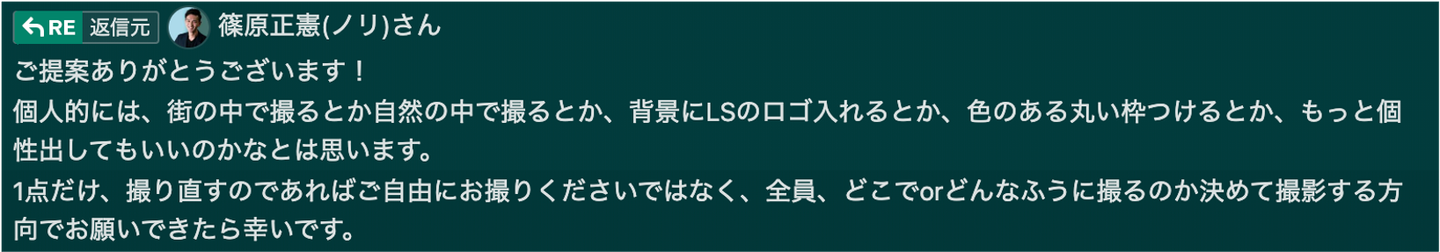 自分のちょっとした投げかけに対し、期待以上のレスポンスをくれたことがありがたかった。