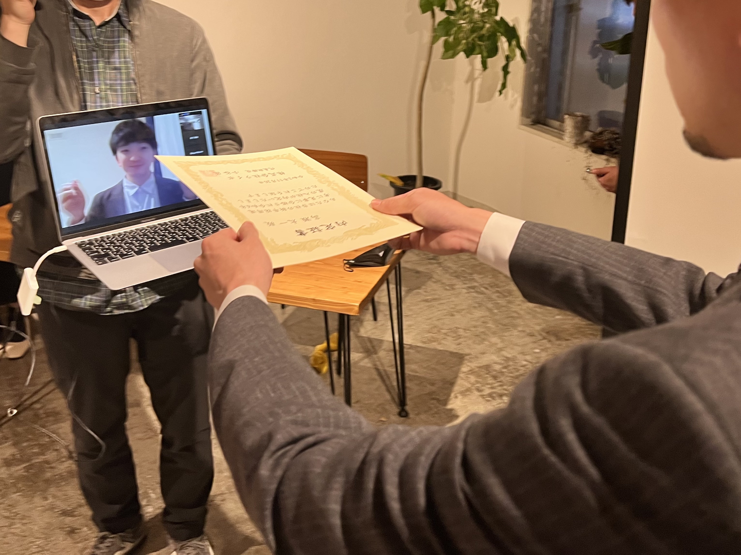 また、新卒入社者の中で高瀬太一はリモートで参加したため、リモート授賞式という新しい取り組みを行いました。