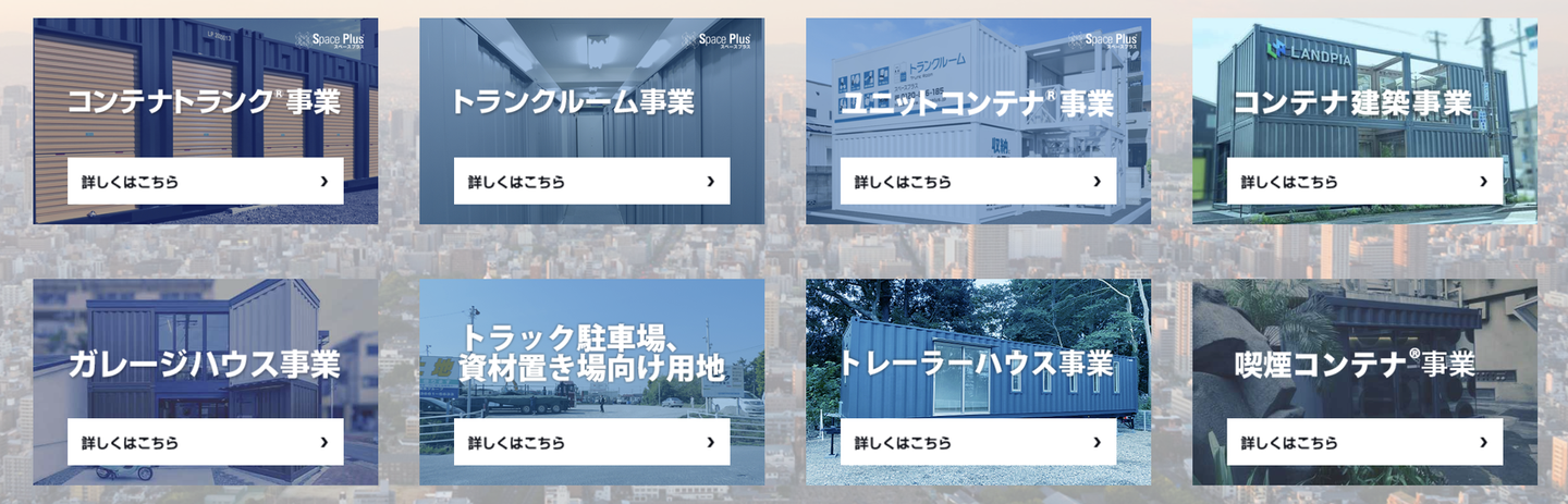 ほとんどがコンテナを活用した事業ですが、ランドピアの強みは「遊休地の有効活用を提案できる」点です。