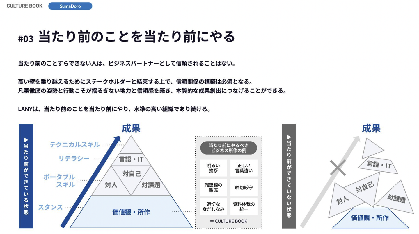 ▲LANYのバリュー「当たり前のことを当たり前にやる」