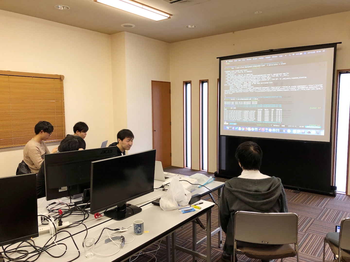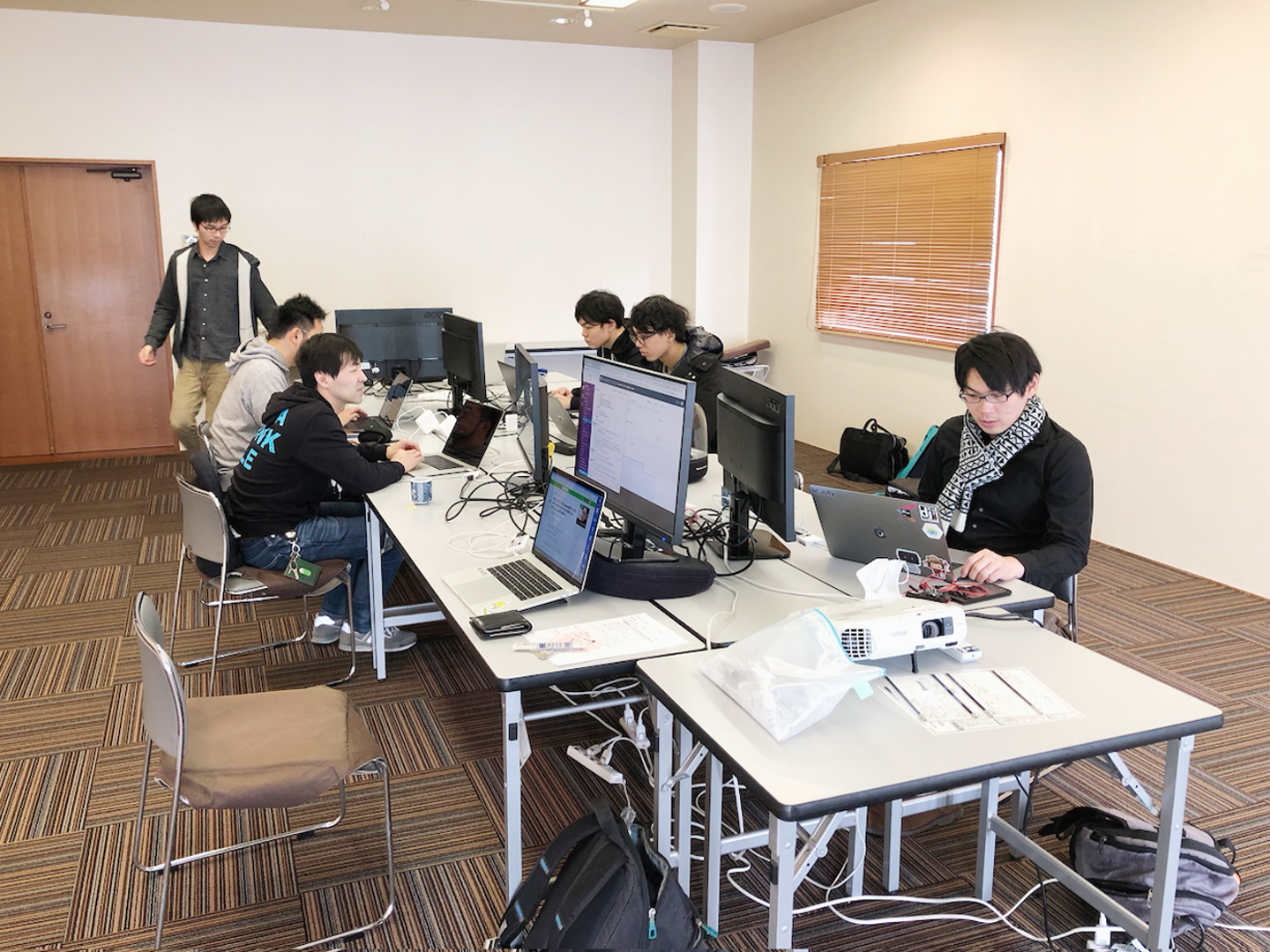 到着直後の様子です。机やプロジェクタもセットされており、すぐに作業できる環境が整っていました。