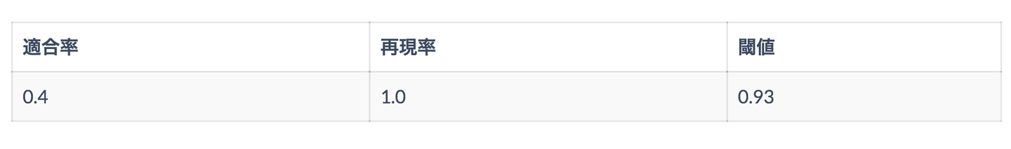 今回の場合は、一定の再現率を担保することで異常メールの検知漏れを抑えた上で、なるべく高い適合率を実現するようなモデルの構築を文目指します。