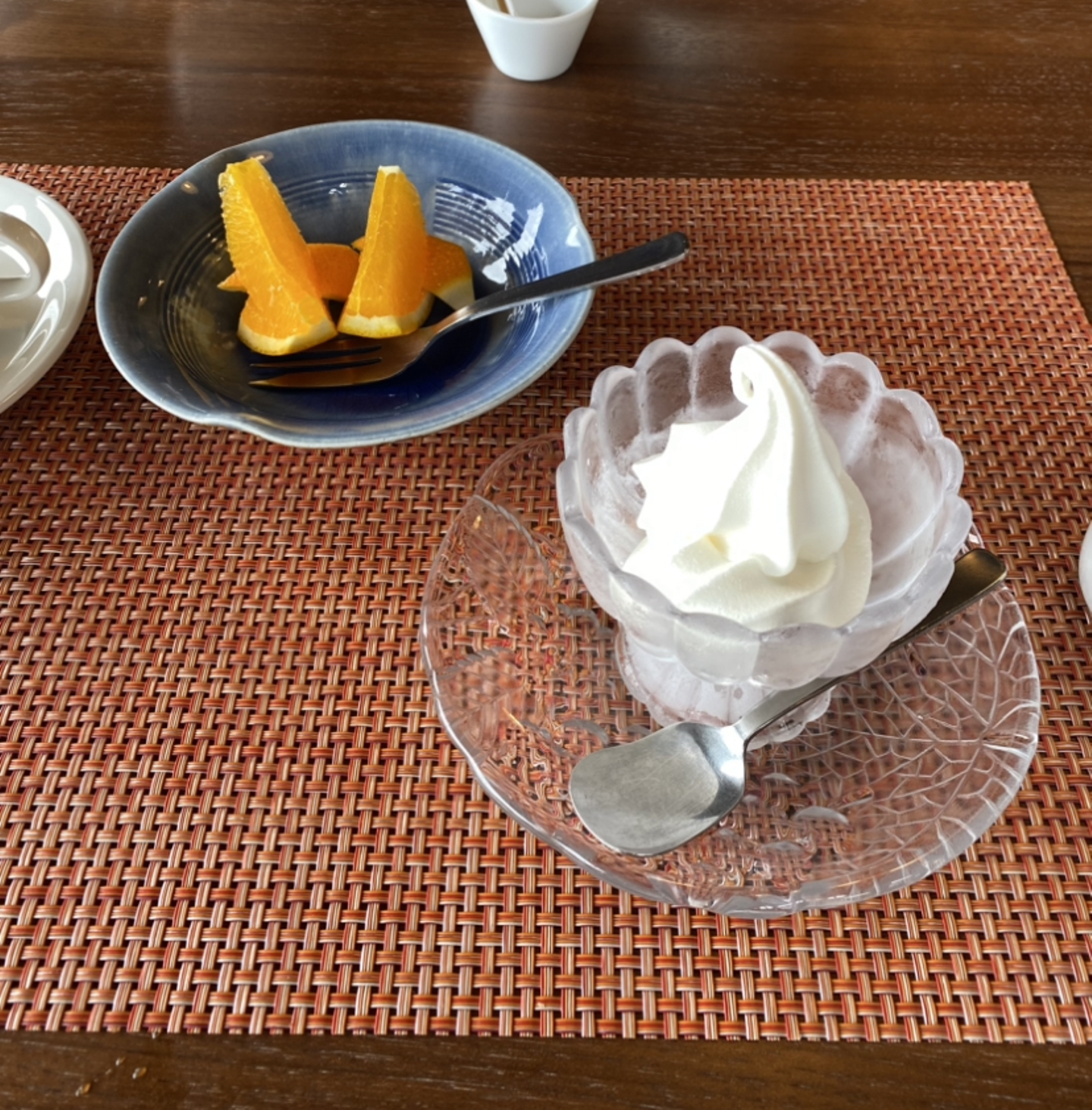デザートは昨日の夕食と同じアイスが。まるで牧場に来たような濃厚さで、塩を振って食べるのが絶妙でお気に入りです。