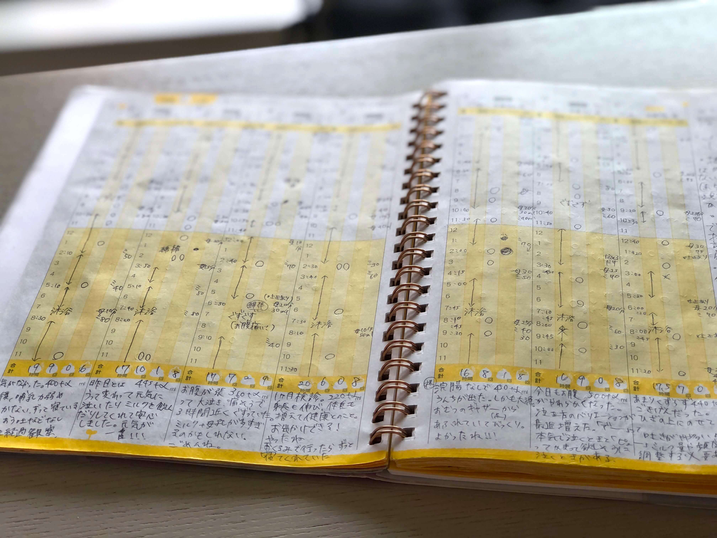 2人で育児日記もつけていて、睡眠時間やミルクをあげたタイミングを記録しています。私と夫のどちらかに何かあった時にこれを見れるように、病院にも持っていけるようにしていました。