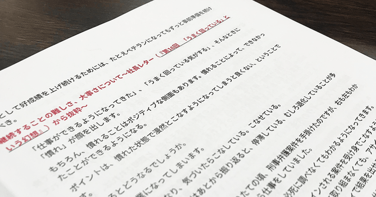 また、角田さんが全社員向けに発信している『社長レター』というものがあるのですが、そこに書かれている仕事観や物事の考え方が「これ、そのまま営業に直結する考え方だ!」という気付きが私自身あったので、そのまま借用しました。