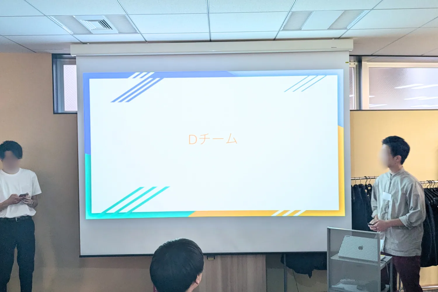 毎日夕方に全体へプレゼンを行い、他チームのメンターからアウトプットに対する客観的なフィードバックをもらいます。3日間あるので、プレゼン内容の改善も即時に行うことができます。