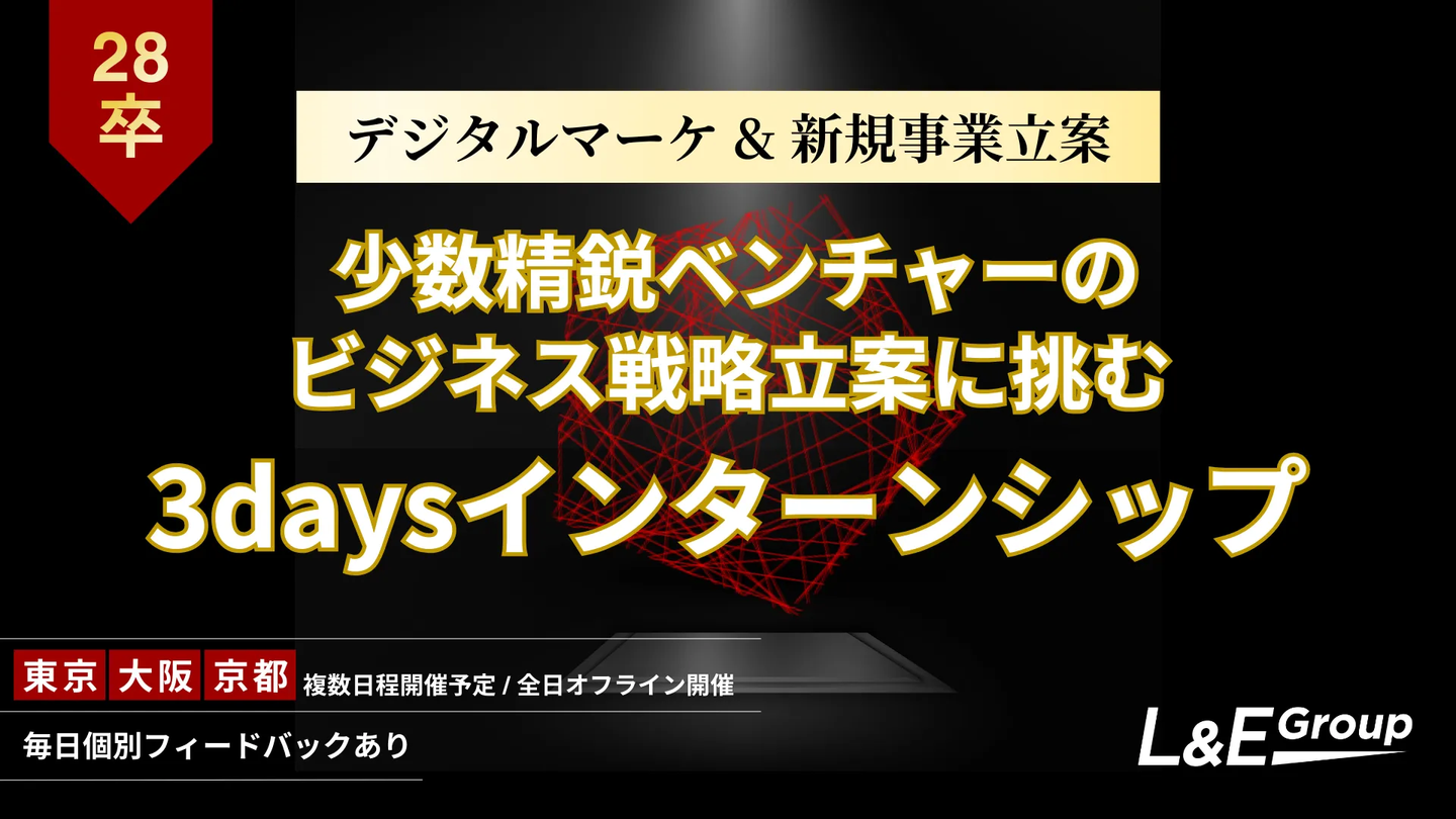 マーケ×事業開発の高難易度プログラムに3日間で挑む! ハイレベル学生から大人気の『L&E Group 3daysインターンシップ』28卒エントリーを開始しました!