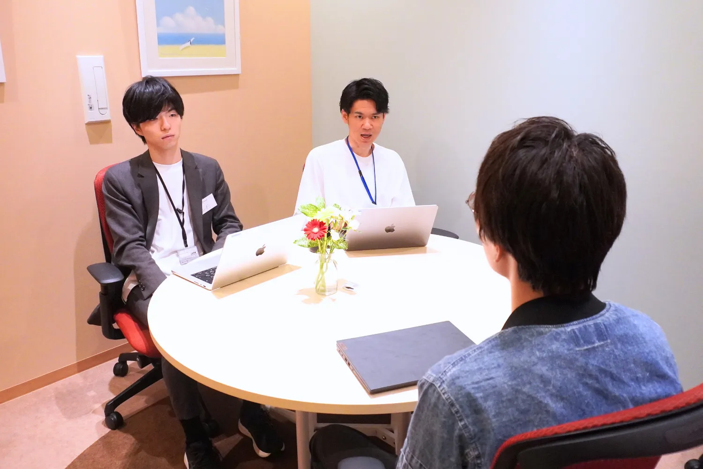 一人ひとりに対して自チームのメンターから、ワーク中の振る舞いのフィードバックや、ビジネスを行う際の考え方・就職活動に対するアドバイスなどを行います。
