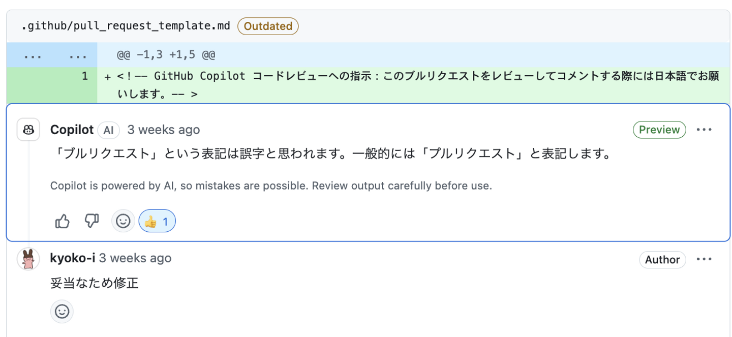 これらのフィードバックを踏まえ、GitHub Copilotレビュー機能を最大限に活用するための方法について、今後も検討を重ねていきます。