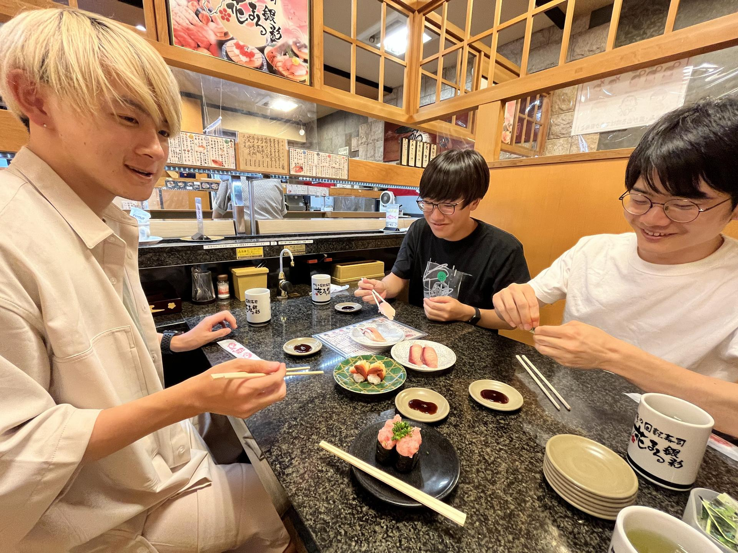 最後は、頑張ったご褒美に近くの海鮮寿司屋さんに行き、美味しい湯河原の魚を使った寿司をいただきました。