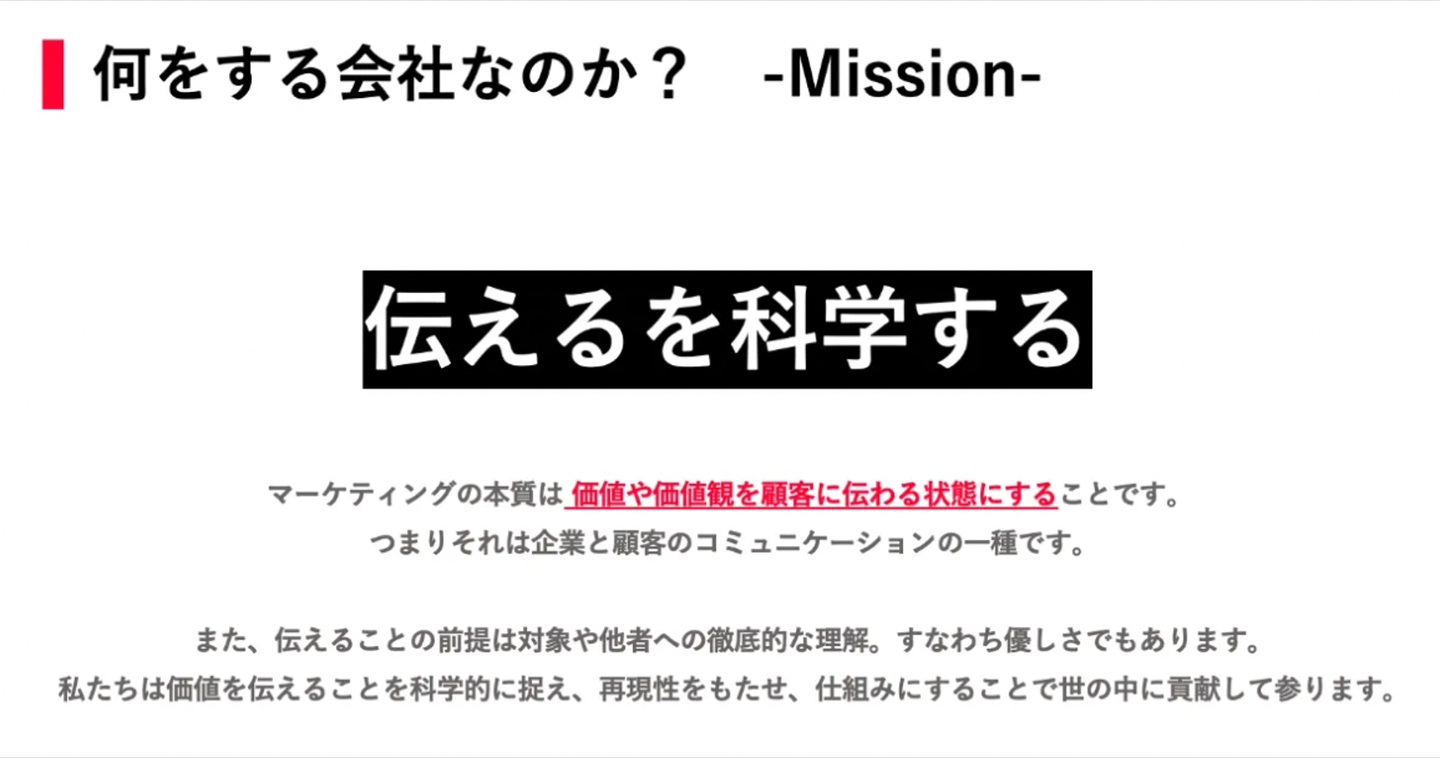 この価値の伝達を科学的に捉え、再現性を持たせることを私たちのMISSIONとしています。