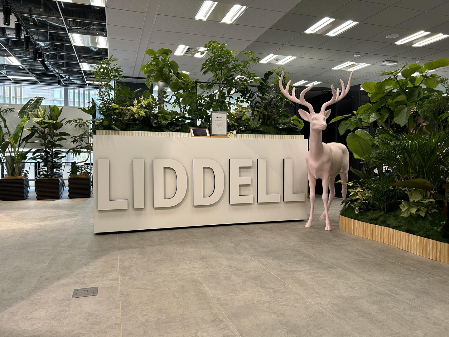 ピンクの鹿が出迎えてくれる、緑いっぱいの明るいオフィスになりました。