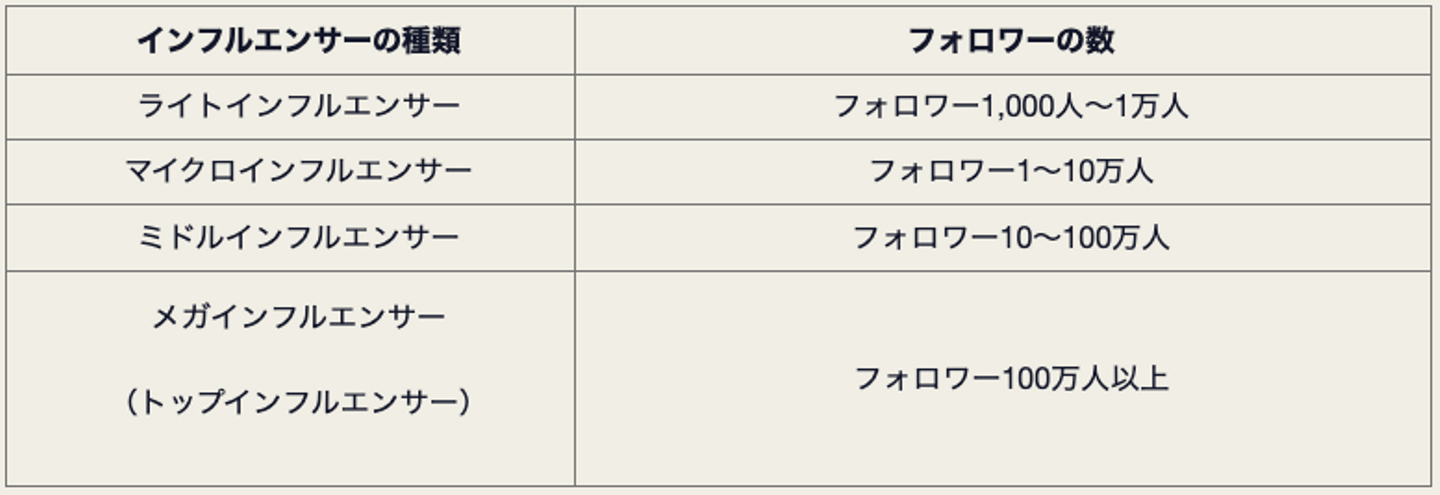 インフルエンサーのフォロワー数と種類