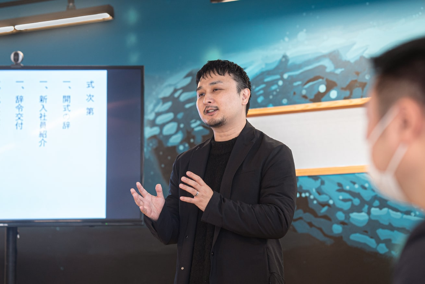 新入社員のみなさんに、学生気分を完全に払拭し、LIG社員の一員としての自覚を持っていただきたいという意図で、広い会議室を貸し切ったいわゆる「ちゃんとした入社式」を開催することにしたのです。