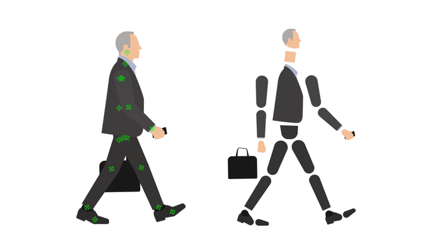 キャラクターアニメーションの思考プロセスを伝えるために、今回は人が歩いている実写映像をアニメーションで再現するというアプローチを採用します。