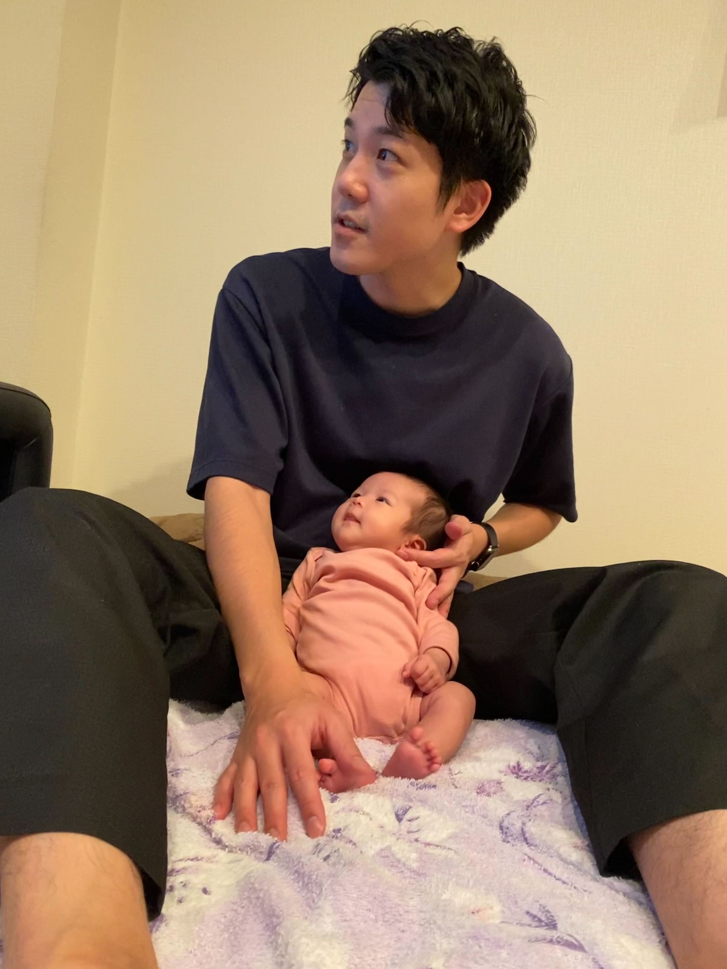 妻は実家に里帰りしての出産でした。Lightblueはフルリモートで働ける環境が整っているので、私も育休前から妻の実家に行き、仕事をしながら娘が産まれてくるのを待ちました。娘が産まれてから育休に入り、娘のオムツ替え、ミルク、お風呂、クリーム塗り、寝かしつけなどに集中して取り組むことができました。我が家ではジーナ式と呼ばれるネントレに取り組んでいて、生活リズムのルール作りも妻と一緒にできてよかったです。また、娘の誕生を機に引っ越しを計画していたので、育休の最後の1週間は私だけ先に東京に戻り、家具家電など新生活の準備をしていました。育児に積極的に参加できたおかげで、娘の生活動線を考えながら家具家電を配置できた気がします。どうでもいいことですが、娘に頻繁にクリームを塗っていたらふと自分の肌も気になって手入れをするようになり、育休が終わる頃には肌がツヤツヤになっていました。育休は肌男になれるチャンスになるかもしれません。