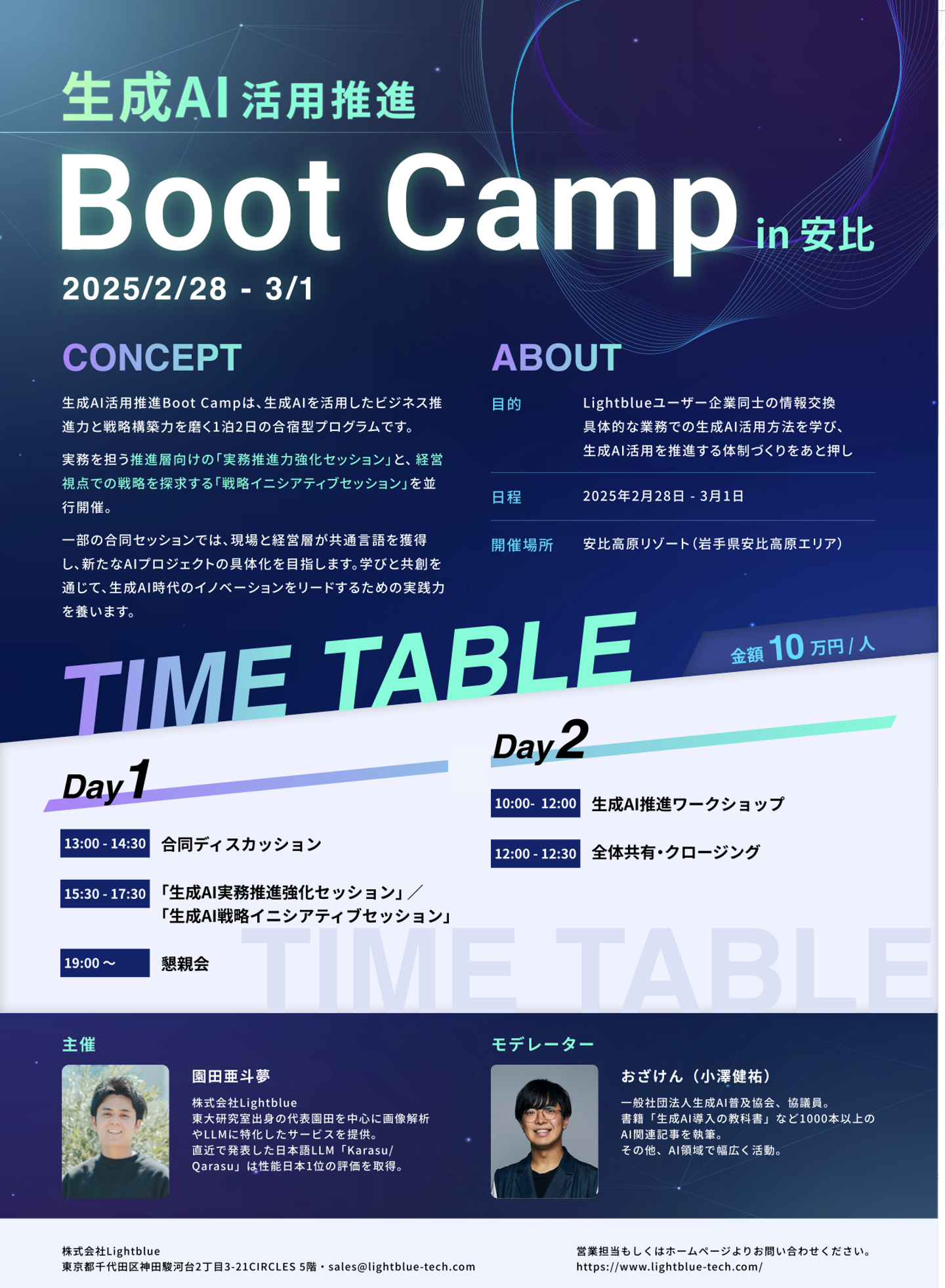 2025年2月28日~3月1日の2日間、Lightblue主催で「生成AI活用促進 Boot Camp in 安比」を開催しました。