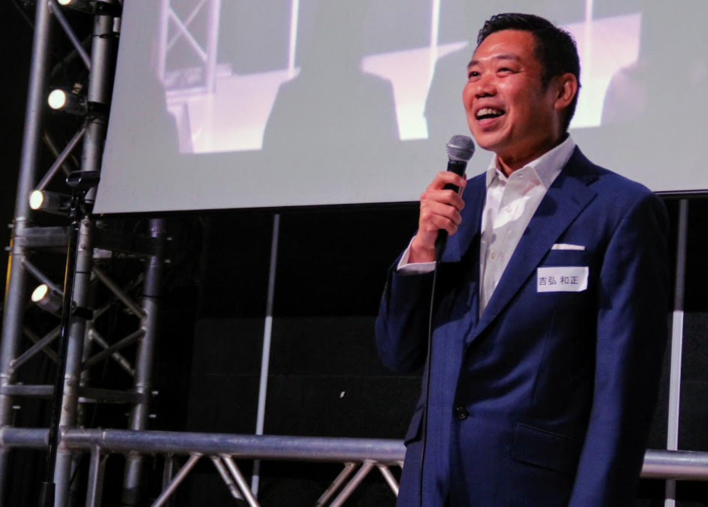 新卒新入社員のみんなにエールを送るリンクバル代表取締役の吉弘。