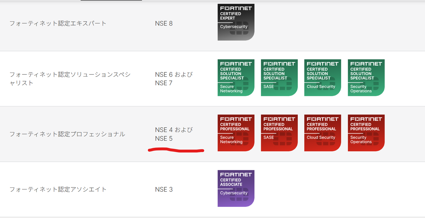 Fortinetプロフェッショナルレベルの各種認定を受ける際には、NSE4 + NSE5の内1つ の計2つの試験に合格する必要があり、NSE4はそれらのコア試験に当たります。