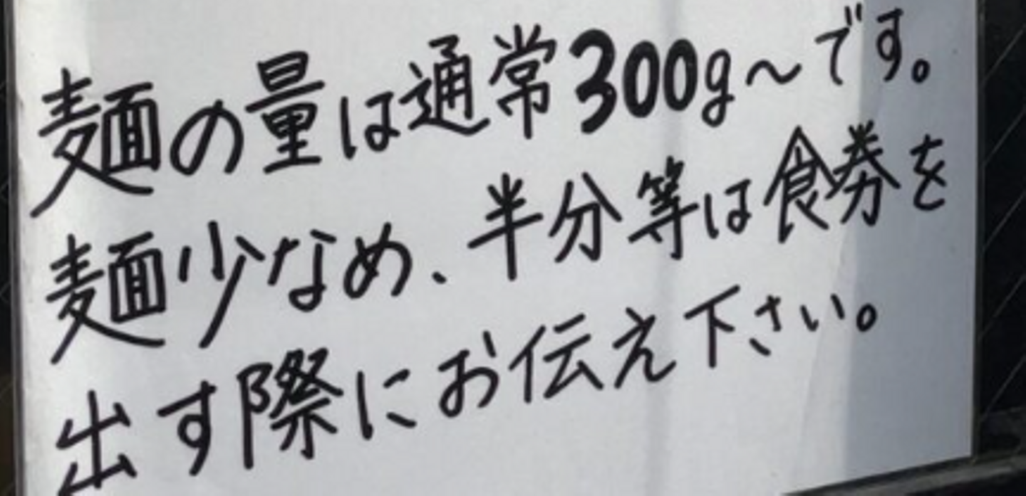 何も言わないと麺300gです。