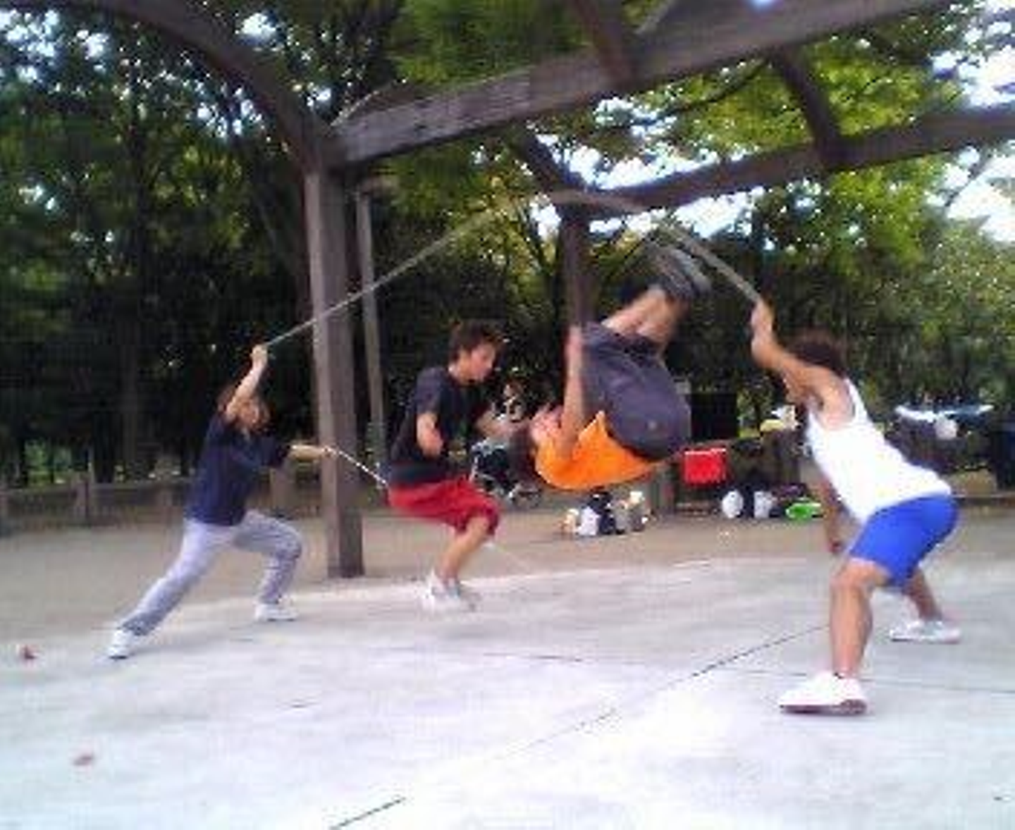 ▲ダブルダッチ。2本の長縄を使ったロープパフォーマンスです。(写真は19年前)