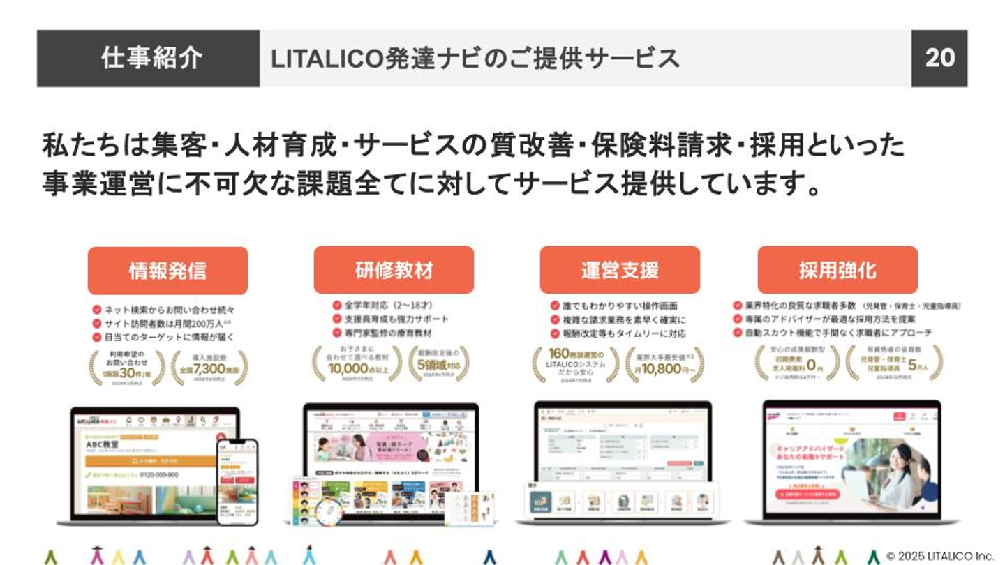 採用課題の解決や、請求業務の効率化、教材の提供などを通じて、支援者が事務作業の時間を短くし、経営課題の解決に繋げ、事業所が「お子さまと保護者への支援」に集中できる環境を整えること。それが結果として、サービスの質を高め、より多くのお子さまが適切な支援を受けられる社会に繋がるはずです。