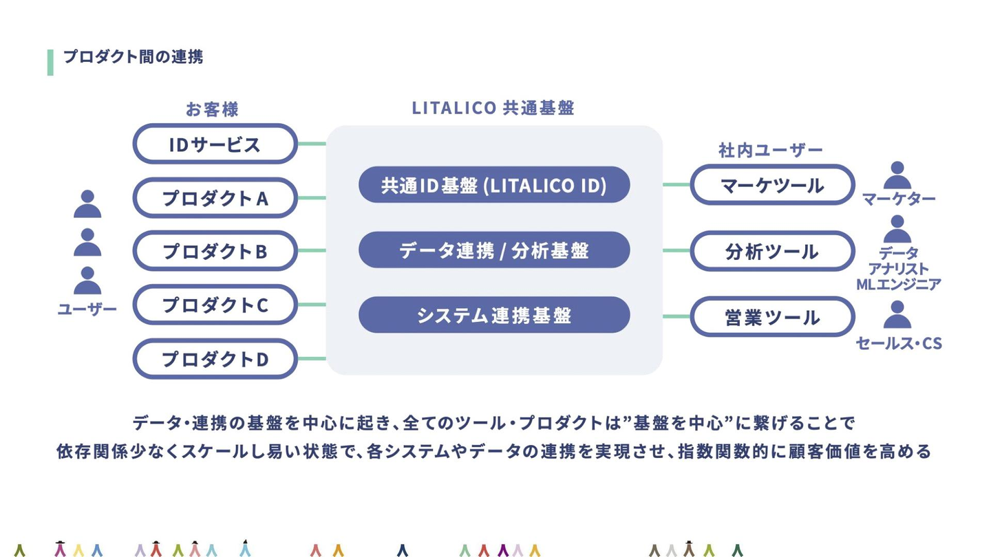 これからのチャレンジの話になりますが、LITALICOのプロダクトは業態上これからもどんどん増えていきます。それら多数のプロダクトを直接繋いでいくのではなく、共通基盤を作りそこに各プロダクトが接続していくことで、最終的に全てのプロダクトが繋がっていく形を作りたいと考えています。