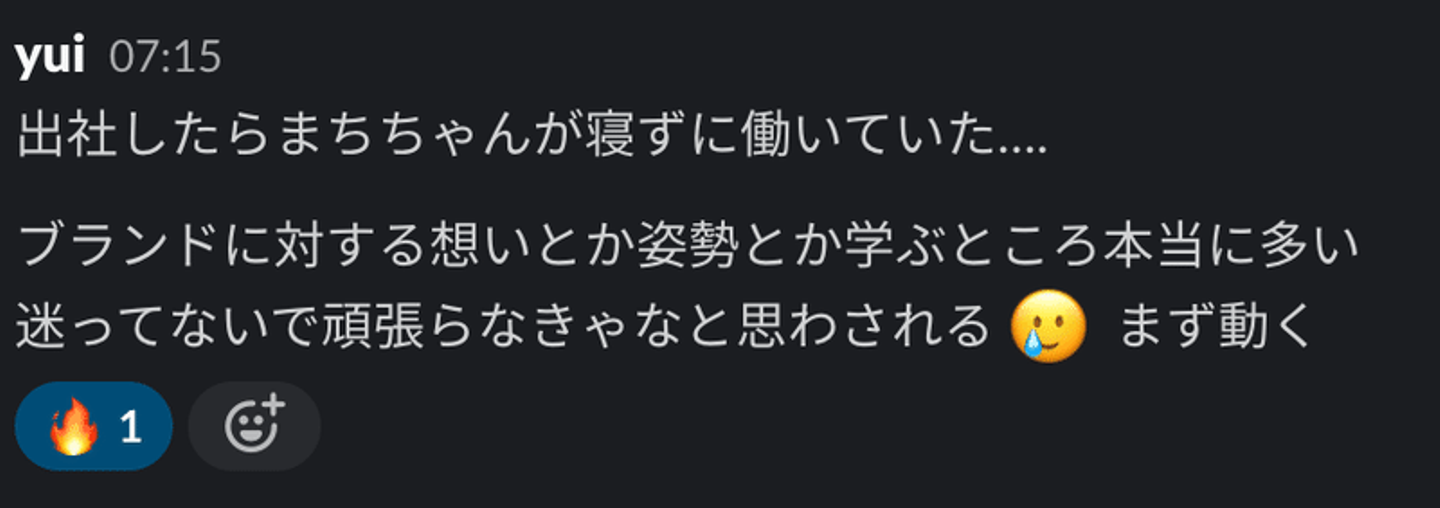 気づけばただの”優秀ないちメンバー”ではなくて、いつのまにか組織の中心人物として、一緒に未来を描く仲間になっていた。とても頼もしくて、日々助けられてばかりだ。