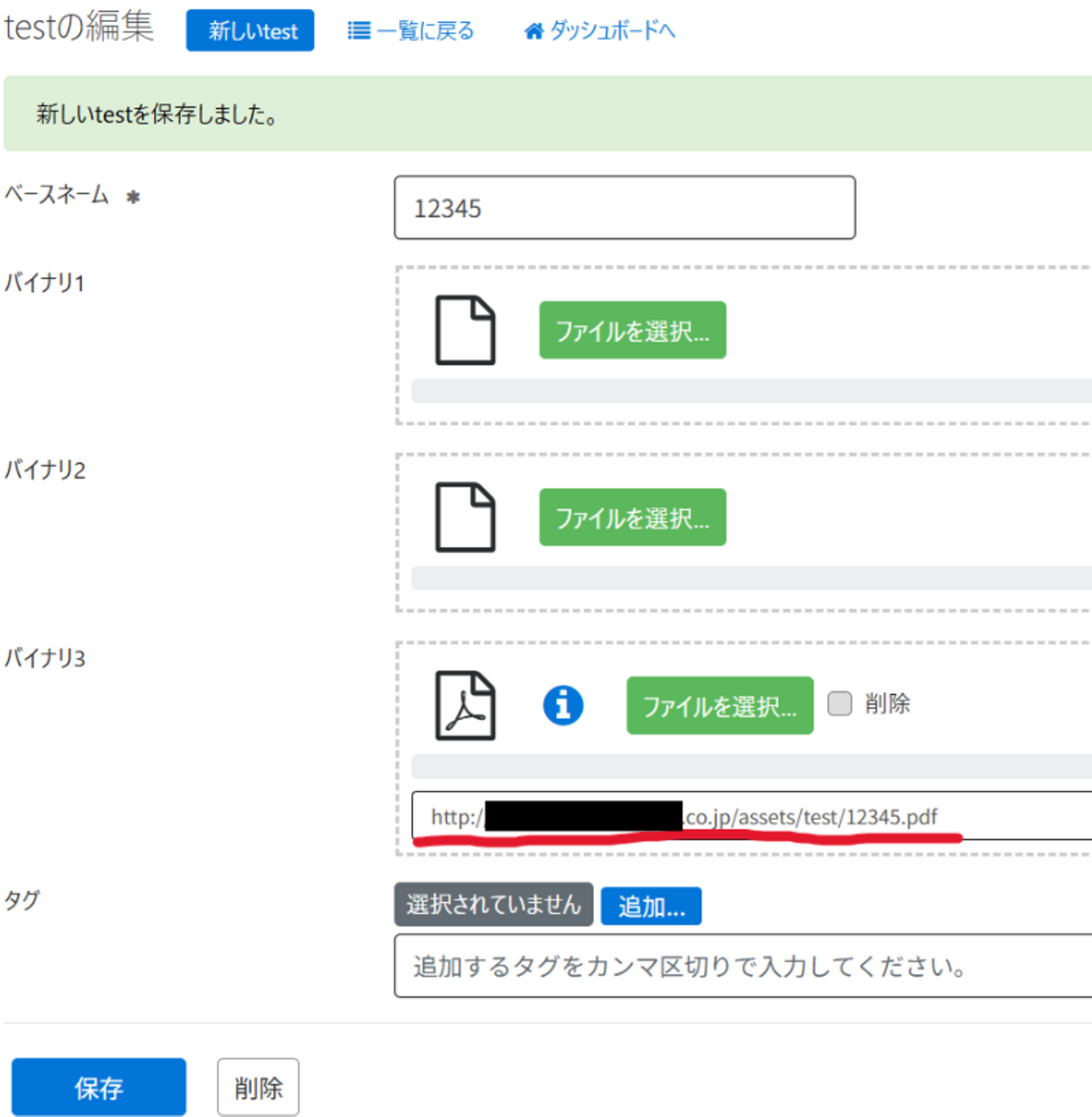 - 最初にファイルが存在するバイナリカラムのURLには『