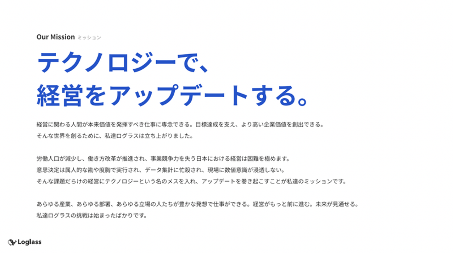 布川:ログラスは「テクノロジーで、経営をアップデートする。」というミッションを掲げています。