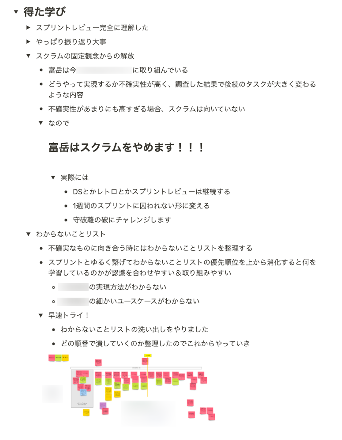 具体例としてはRSGT2023に参加したメンバーが「今のチームのエピック的に不確実性高すぎるのでスクラムやめます」と言ってチームのプロセスを変化させていく事例などができました。