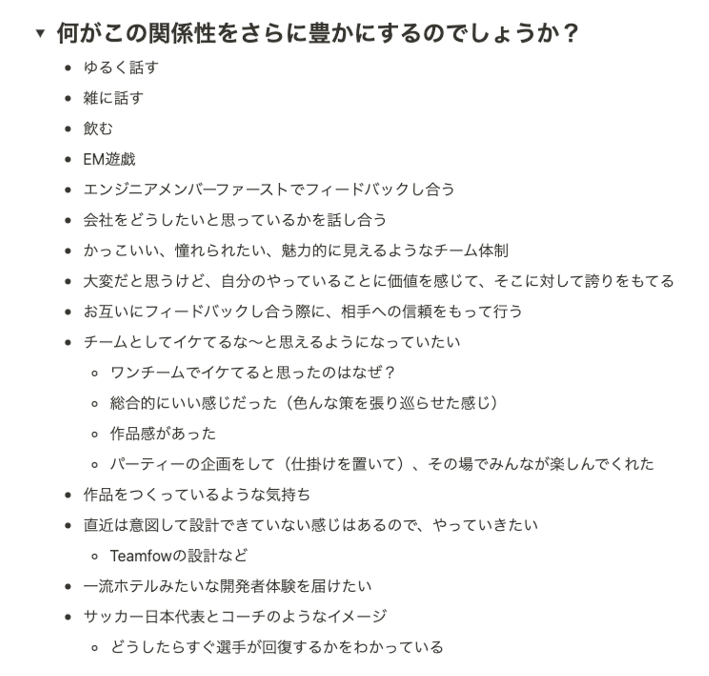 マネージャーとして個々人に対してのキャリアやチャレンジを支援していくという意味では高い期待を個別にかけさせていただくこともありますが、チームとして成熟して新たなチャレンジができている状態になっていくと、マネージャーがマスコットという概念的な存在になっていくのはある意味正しいのかもしれない、と納得した自分がいました。