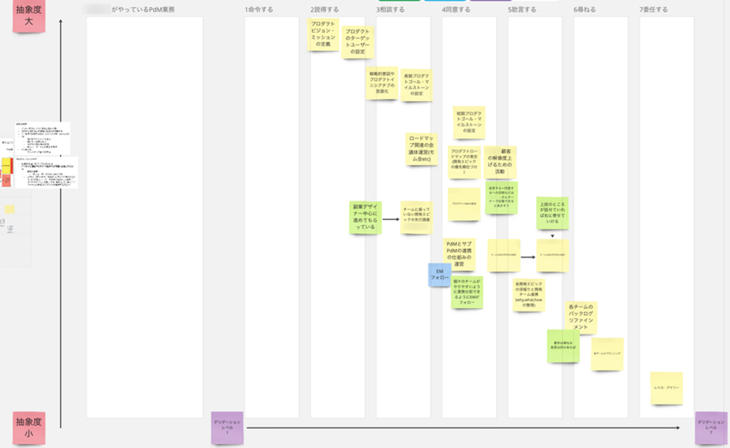 実際には初期は泥臭く動かしていたというのが正直なところで、サブPdMというPdMの補佐的な役割を担う人を各チームのエンジニアに打診してまわったり、その後PdMとのデリゲーションポーカーを実施して期待値や役割をさらに整理するなどを実施して動き始めました。