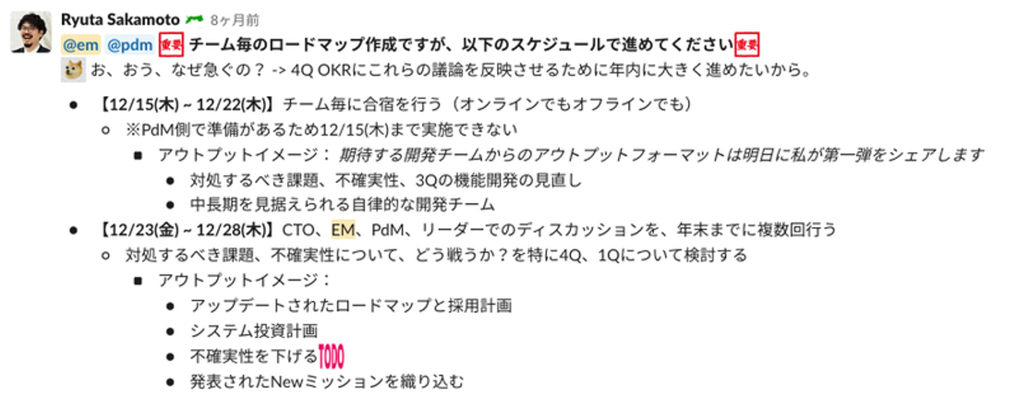 このとき考えていたことは、これから人が増えてチームが増えて、マネジメントも増えていく過程でマネジメントの目線がしっかり合わさるようにしておくことでした。