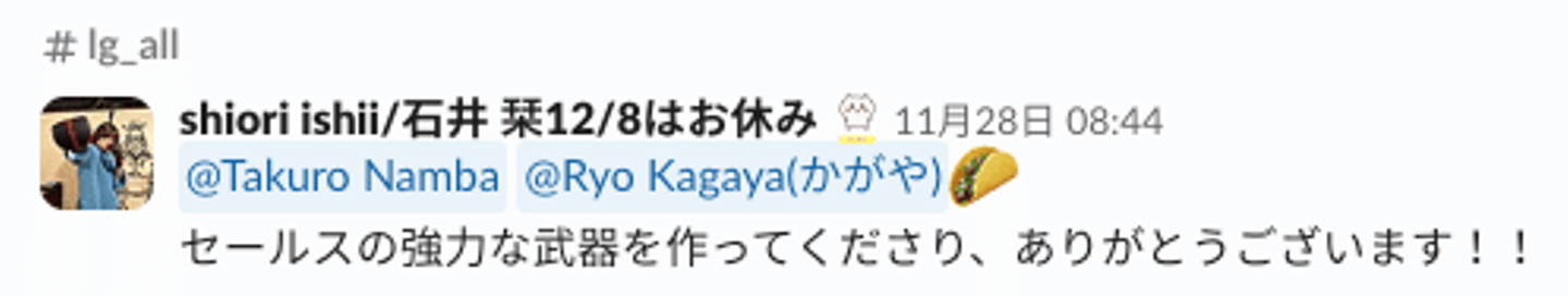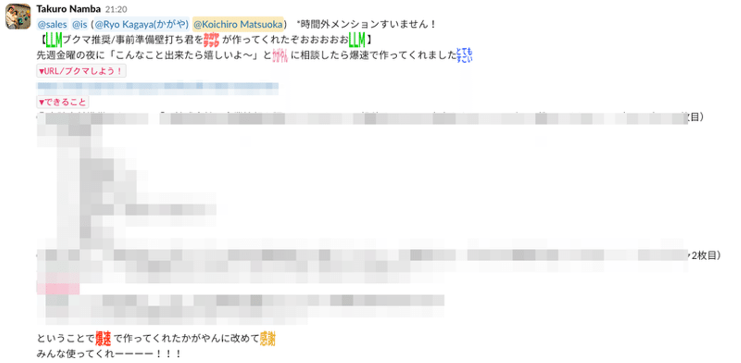 LLMチームに相談を持ちかけていただいたセールスの方が、GPT作成後に爆速で広めていただき、今では日々活用してもらっているようです。