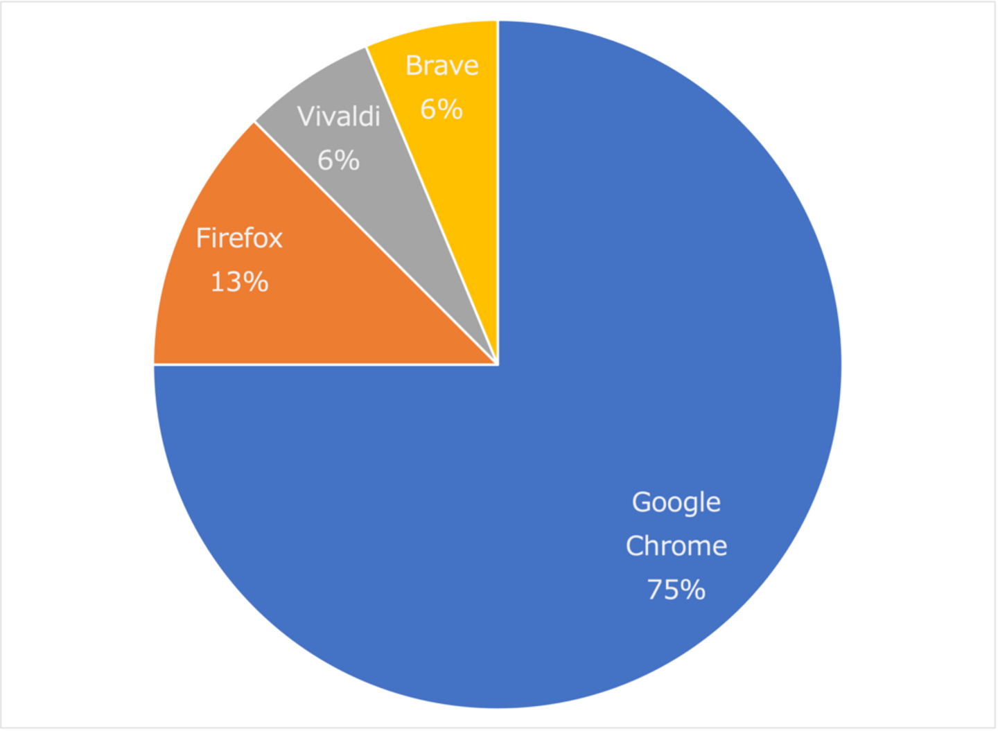 ほぼ予想通りではありますがGoogle Chromeが圧倒的な社内シェアです。その他のブラウザとして名前が挙がったのはFirefox、Vivaldi、Brave。VivaldiとBraveはあまり使っている人を見かけないので珍しいですね。