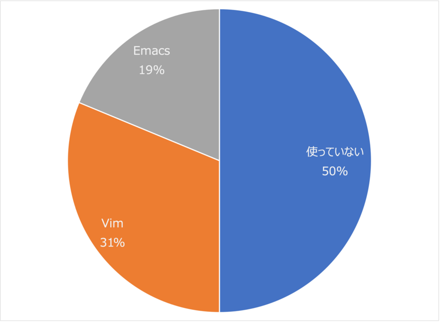 ログリーのエンジニアでは約半数がキーバインド変更をしており、Vim派の方が若干優勢のようです(この勢いを落とさないようにVimの布教活動を強化していきます)。