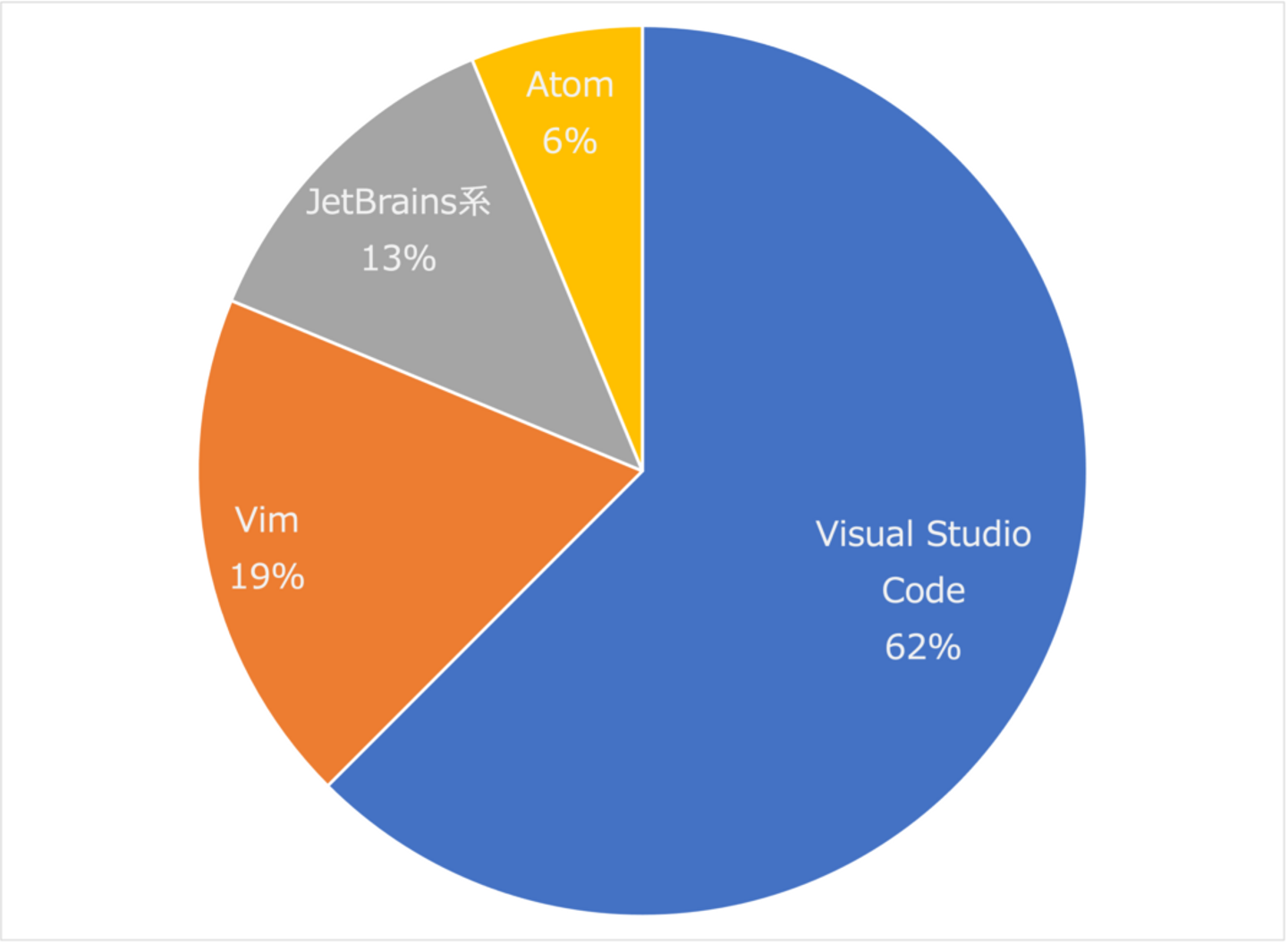 アンケートの結果としては、Visual Studio Codeが圧勝。以前はAtomやSublime Textが人気でしたが、VSCodeが全部持っていってしまった印象です。