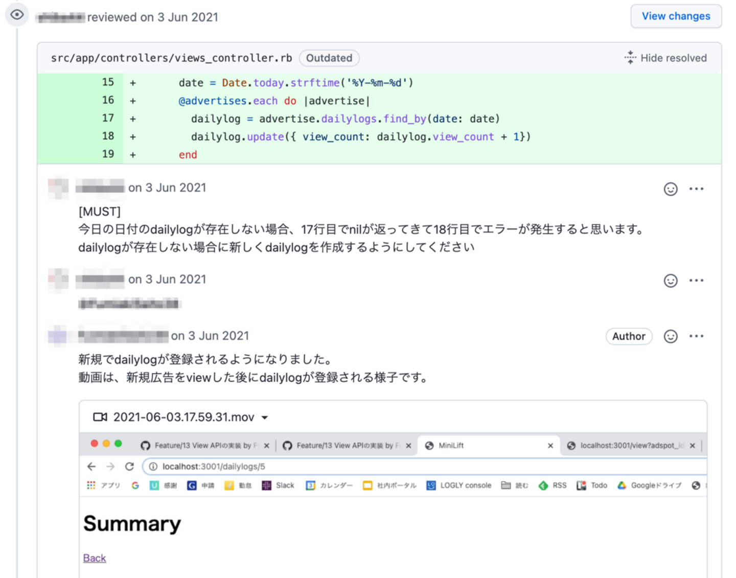 - コードの問題点や疑問点をレビューで指摘できること