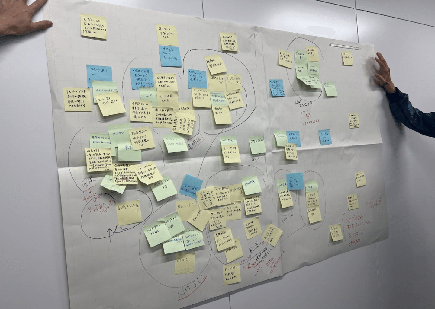 社員が出した付箋をもとに、共通点ごとにグルーピング