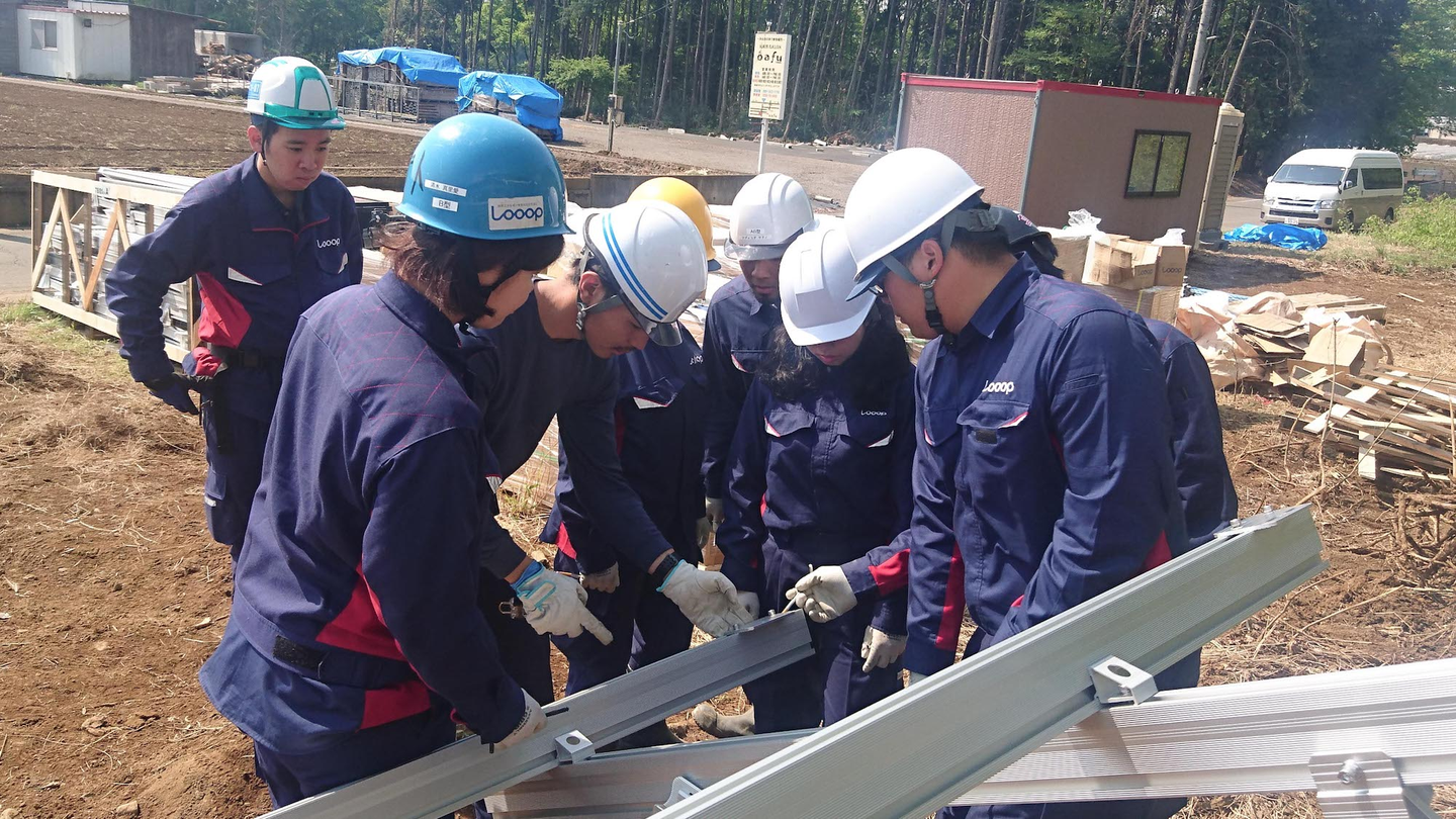 施工部の先輩や専門業者の皆様の指導を受けながら、全10日間、ゼロから太陽光発電システムを設置していきます。