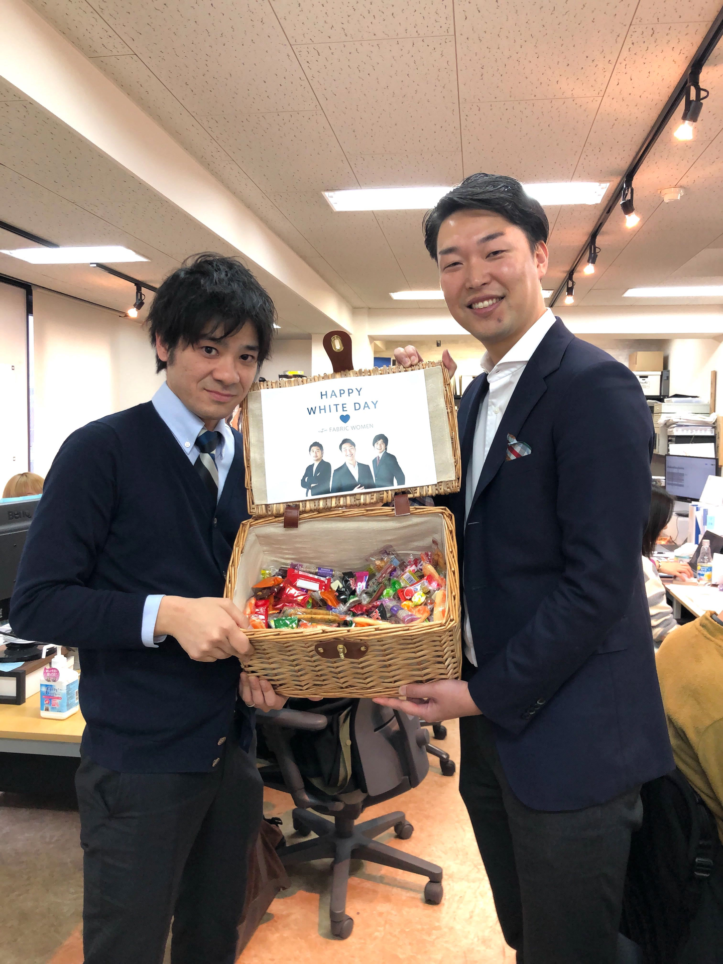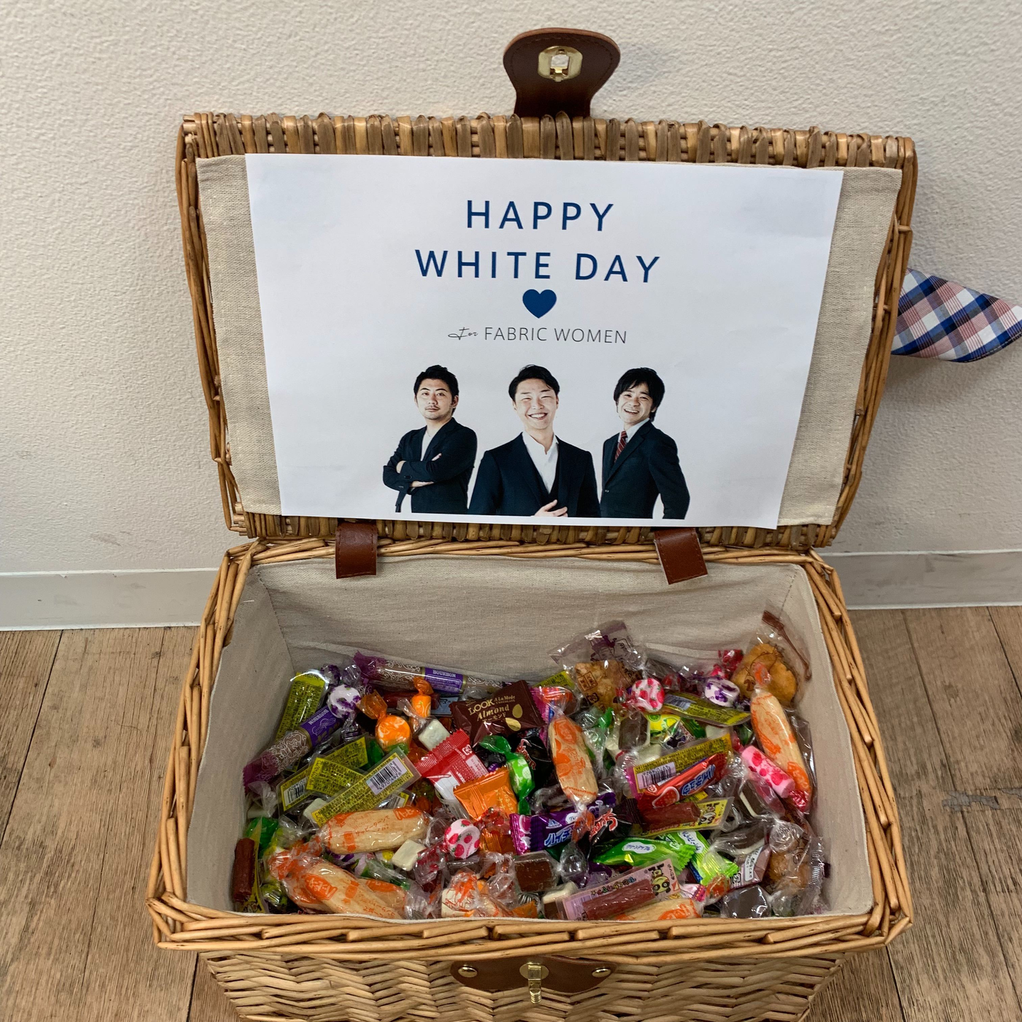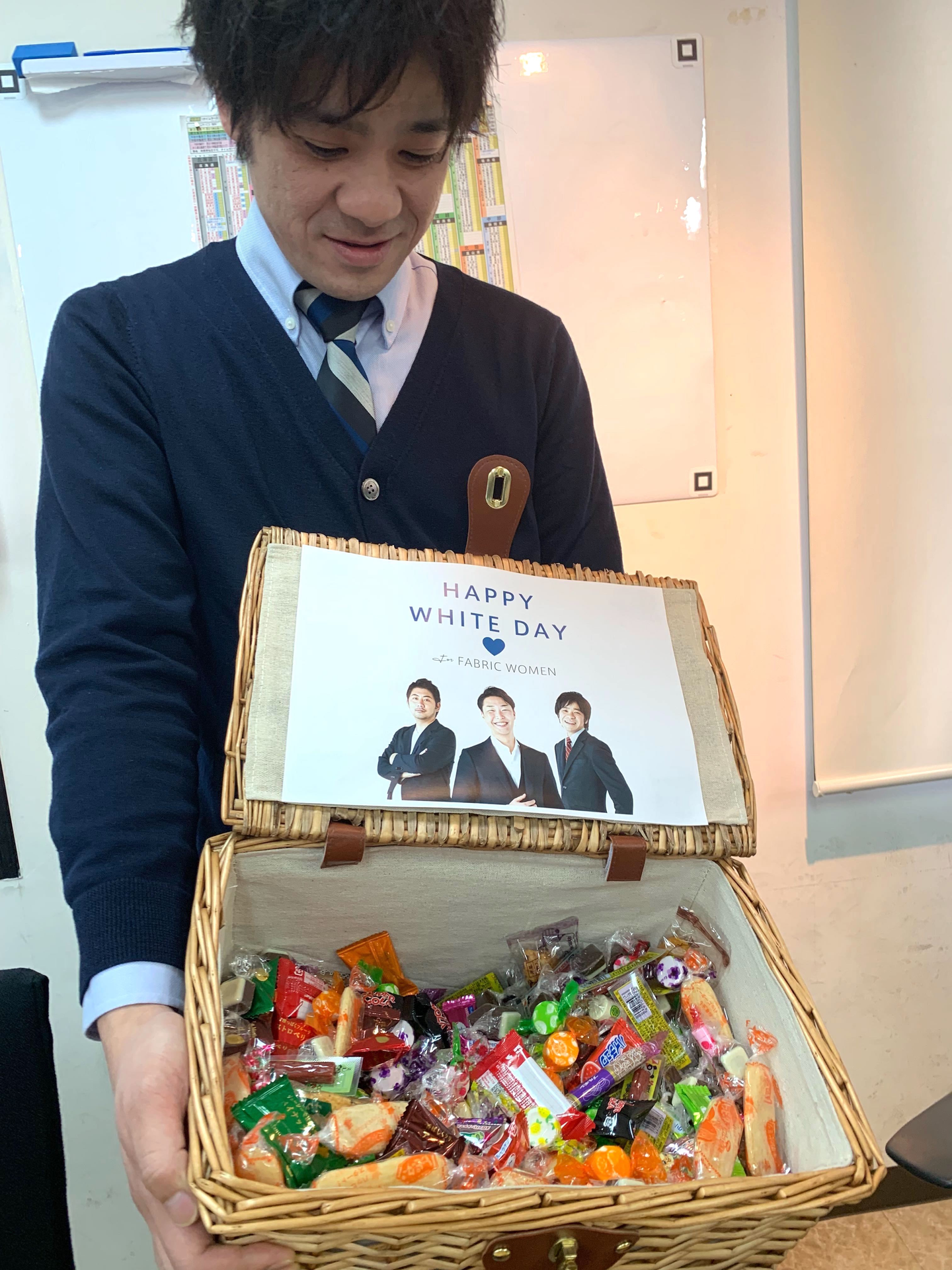 FABRIC TOKYOでは、経営陣の森、三嶋、中筋より「女性社員へホワイトデーのお返しをしよう!」ということで、「女性社員へお菓子のつかみ取り」企画・実施をしました!