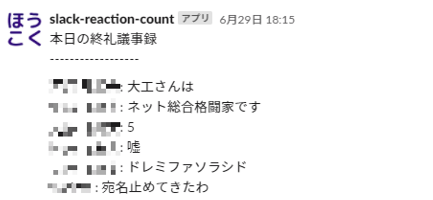 どうやら「終礼の議事録bot」はSさんに厳しいようです。